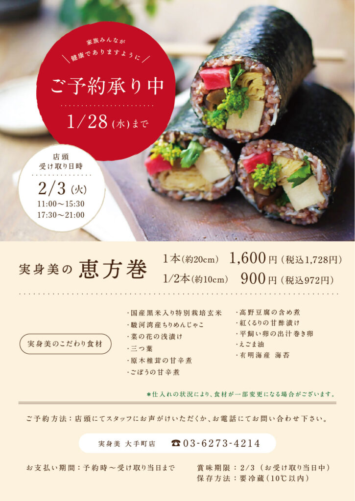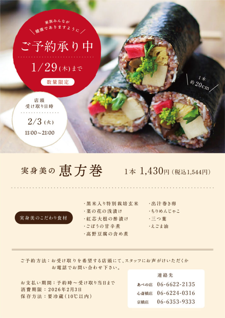 \2026年の恵方は南南東/こだわりの実身美の黒米入り恵方巻♪